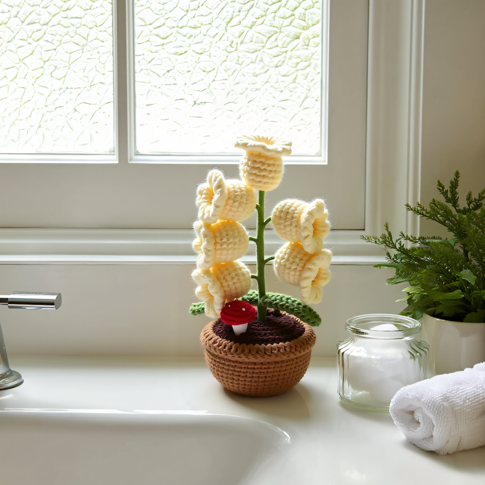 Materials: Knitted yarn, plastic base